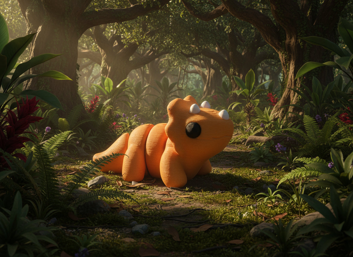 - Design: Cute, stylized Triceratops with expressive features